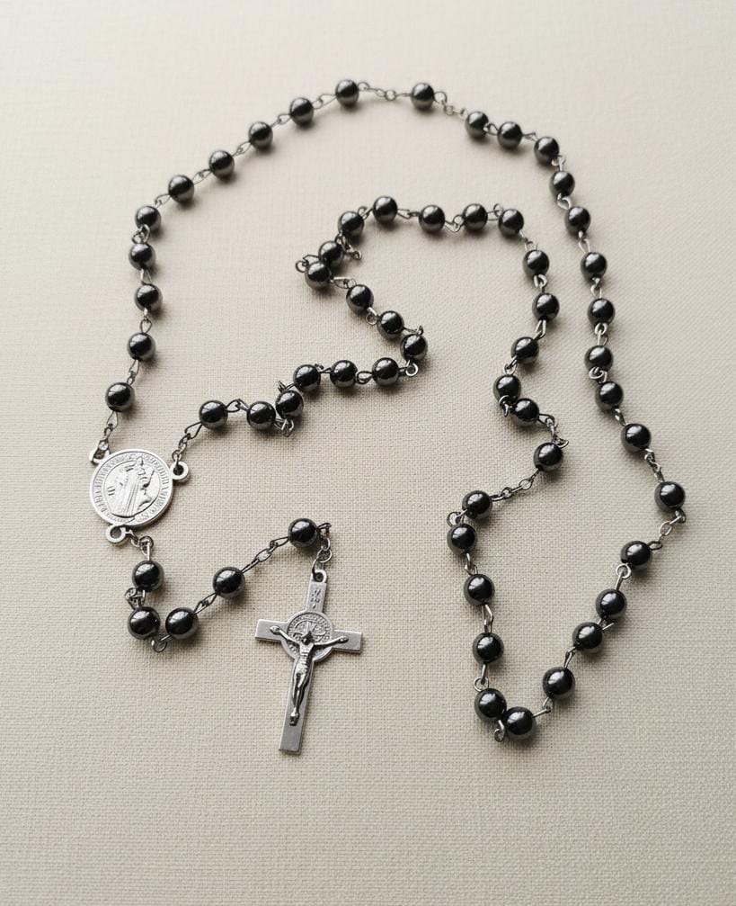 Terço confeccionado em hematita