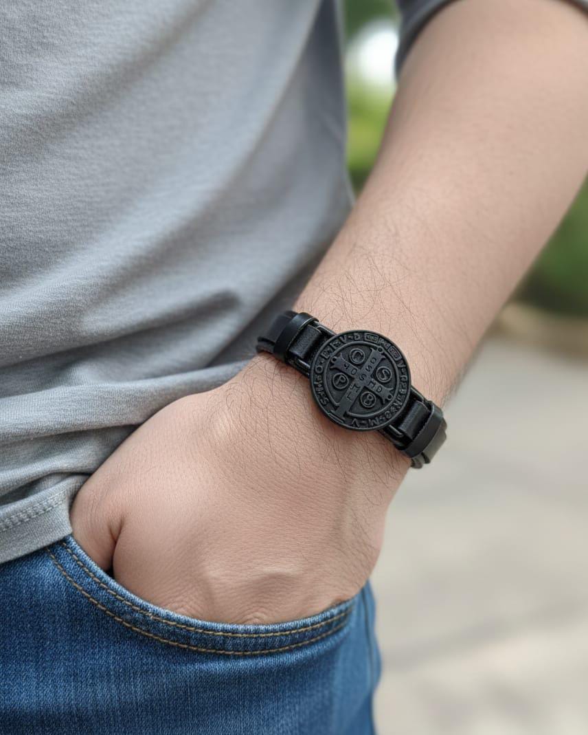 A Pulseira São Bento em Couro Preto, a fusão perfeita entre proteção milenar e design moderno.