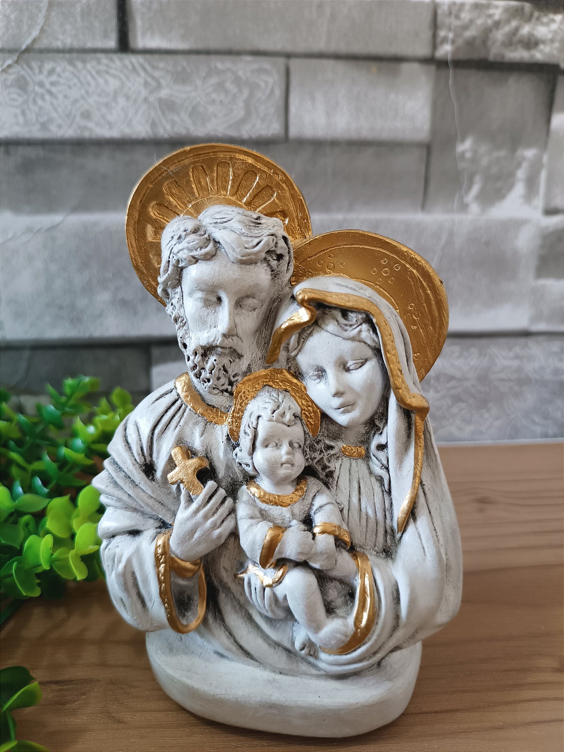 Esta delicada imagem da Sagrada Família, em formato de busto, é confeccionada em gesso de alta qualidade e pintada à mão, revelando cuidado artesanal em cada detalhe. Parte da exclusiva Coleção Mármore, a peça possui acabamento refinado que remete à nobreza e à serenidade do mármore, transmitindo beleza, fé e harmonia.