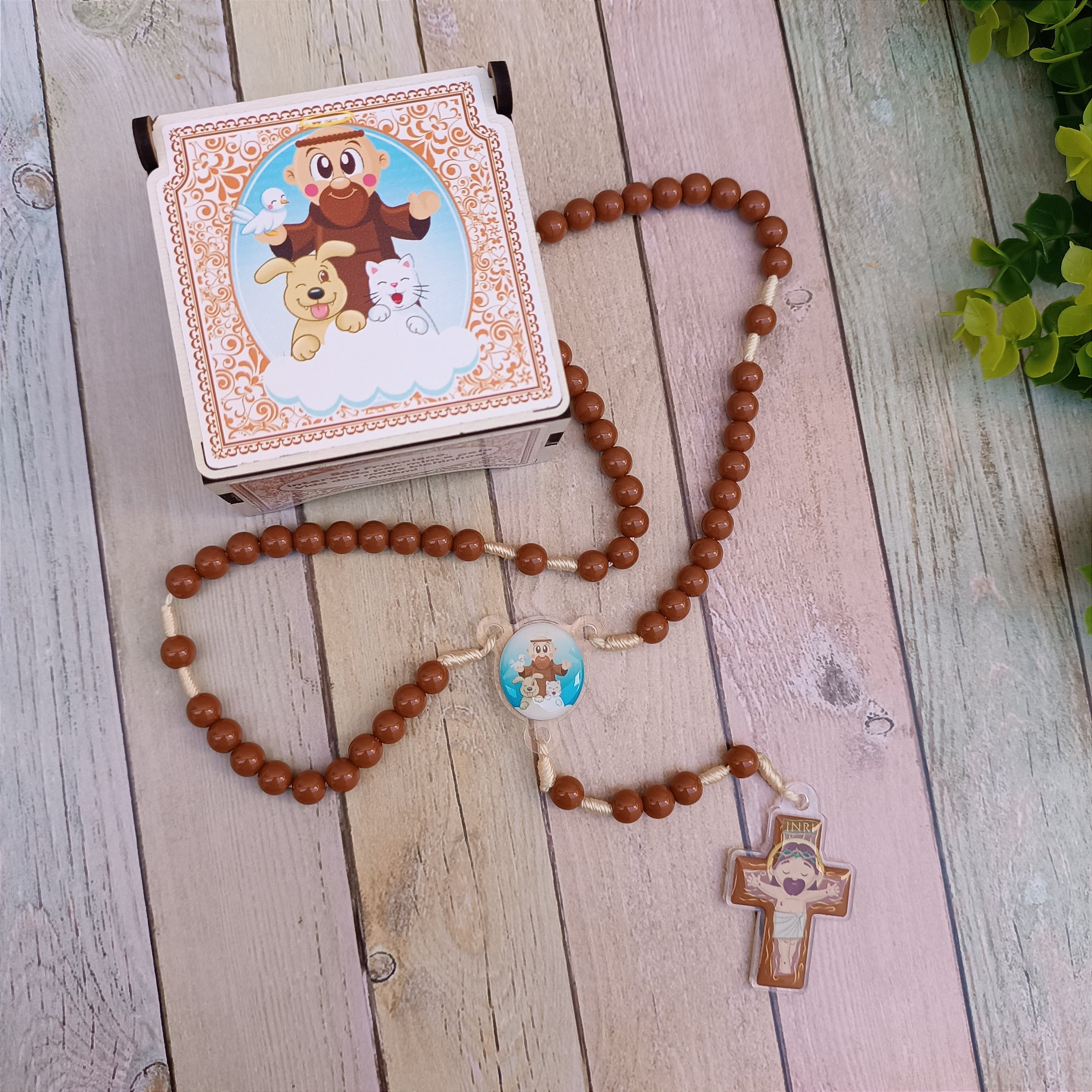 Inspire as crianças a seguir o exemplo de São Francisco de Assis, cultivando o amor pela simplicidade, natureza e paz. Este Terço Caixa Infantil é um símbolo de fé e proteção, perfeito para: